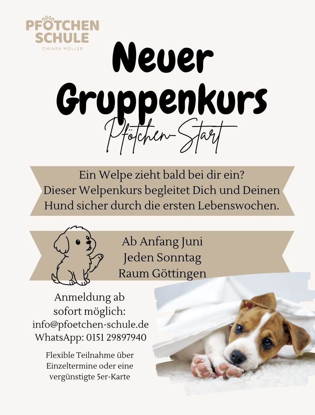 - Ab Anfang Juni, immer sonntags, startet ein neuer Welpenkurs im Raum Göttingen